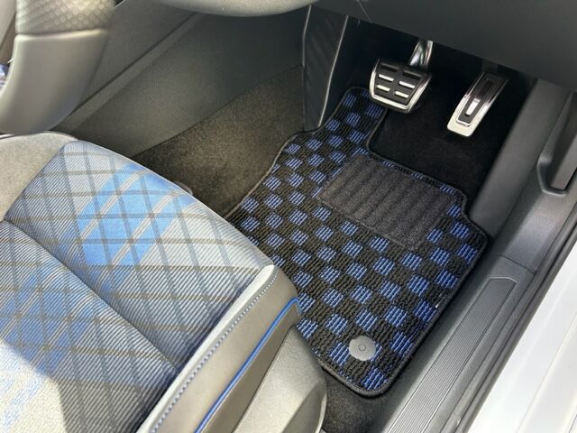 納車されて初日はすぐ簡単に出来る、maniacs Doorhandle Smoothing Plug ピュアホワイトとmaniacs Original Floor Mat Golf7/Golf7.5/Golf8 (チェッカータイプ)ブルー×ブラックチェッカー、maniacs ワイドリアビューミラーを装着。キーにはR専用のmaniacs Leather key shell (VW-R type)ブラックレザー × ブルーステッチを取り付けしました。