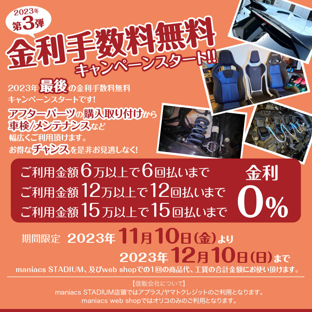 ※maniacs web shopでのお買い物でもご利用可能です。信販会社はオリコとなります。お申込みは弊社でのお取り付けの場合でもシステムの都合上配送をご選択ください。お取り付けご希望の場合は発送いたしませんのでお知らせください。