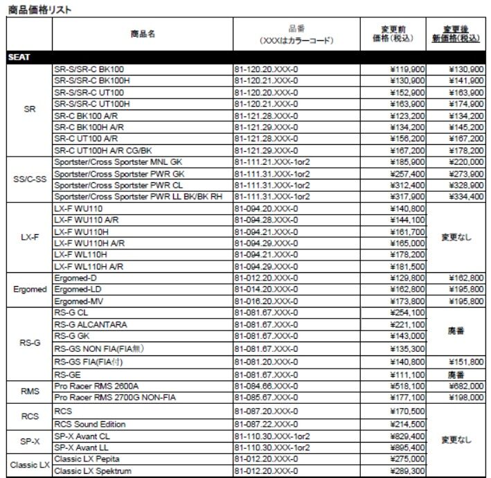 4月1日(火)ご注文分から一部モデルを除き値上げされます。