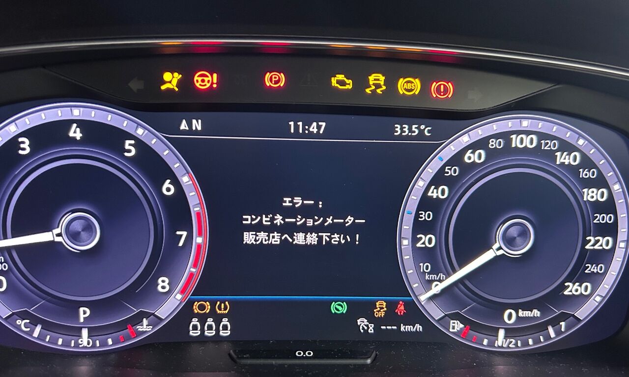 ディスプレイ(コンビネーションメーター)にエラー表示が出たり、警告灯が点灯する故障事例ですが、メーター内部の故障が原因となりますので、ディーラーさんに修理を依頼されるとディスプレイユニットのアッセンブリー交換となり、50万円程度の費用が必要となります。