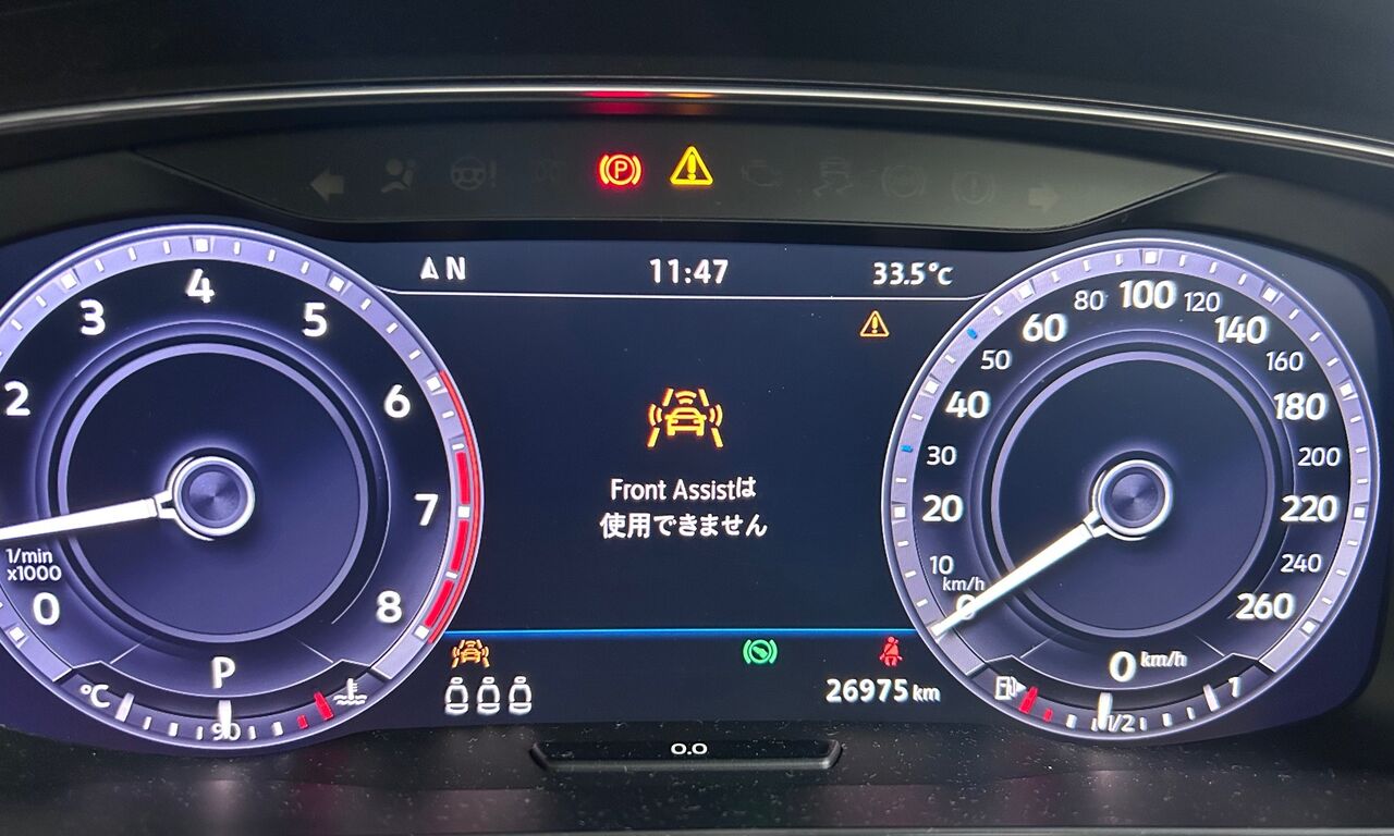 不具合の症状として上記画像にあるコンビネーションメーターエラー、フロントアシスト使用出来ないエラーがメーター内に表示されており、ウインカー作動音/警告音、その他コンビネーションメーターより発生する各種作動音が欠損してACC/フロントアシスト等が動作しない等になります。