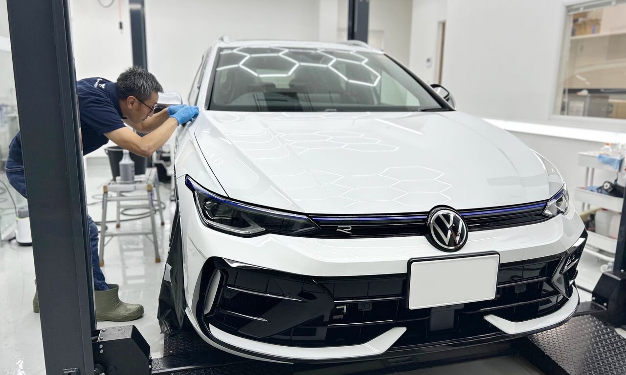 ご納車直後のGolf8.5R Variant のお客様より、maniacsヘッドライトプロテクションフィルム、Bピラープロテクションフィルム、アルミモール専用プロテクションフィルムのご依頼を頂きまして施工を行わせて頂きました。
