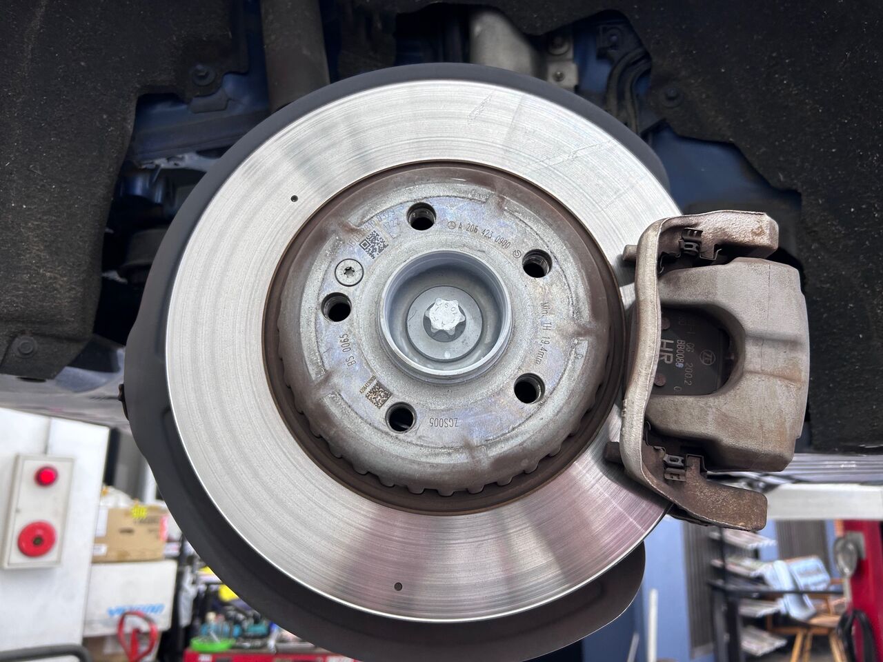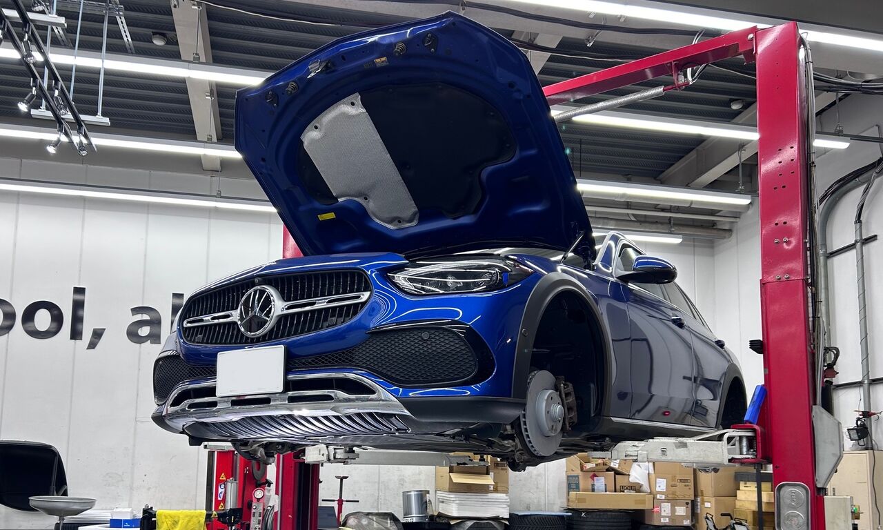 maniacs STADIUMではメルセデスベンツのブレーキローター/パッド交換も作業を行える状況が整いましたので、社有車『メルセデスベンツC-Class All-Terrain』にて交換作業を行いました。